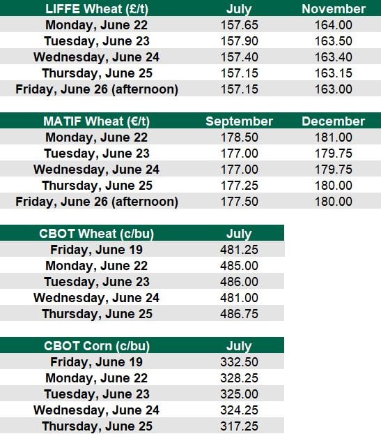 Harvesting is underway in many parts of Europe, but it is early to have yield estimates from these crops. In the south-east of England an odd combine has been rumbling, but the main harvest in the UK is set to begin in the first week of July.