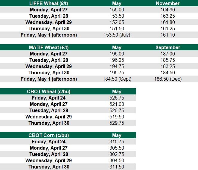 Green grain prices for harvest, sent out to Glanbia growers at home, reflected this on Tuesday, April 28, when wheat fell to €157/t and barley dropped to €135/t.