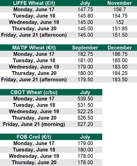 On the home front, Glanbia made an offer of €162.00/t for green wheat and €150/t for green barley, for the forthcoming harvest, to its suppliers last Monday, June 17.