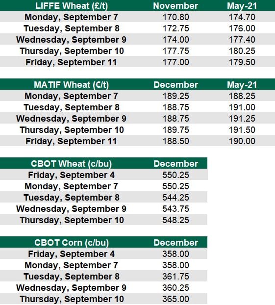 Grain markets were in the green this week. Prices have been increasing over the past few weeks and on Thursday evening (September 10) UK, French and Chicago wheat all moved upwards.