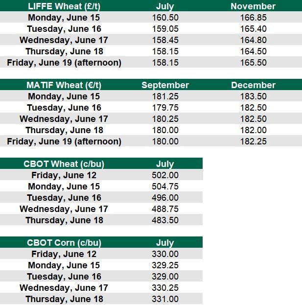On the continent this week the spot price for feed barley (delivered Rouen) was at €158/t on Friday morning, June 19.