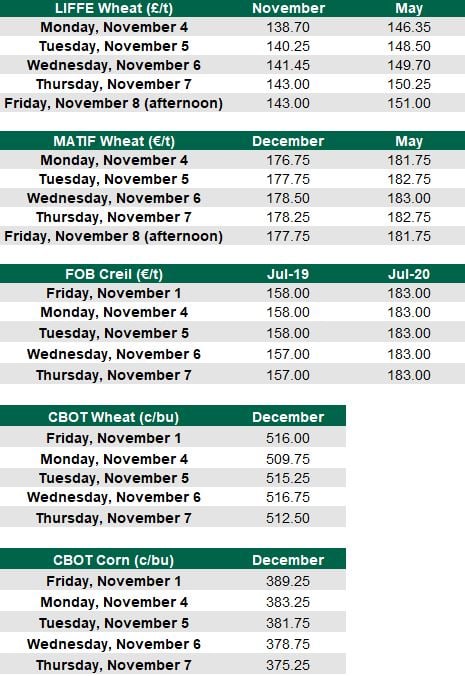 While nearby prices have been rising, November 2020 wheat stood at £159/t on Friday afternoon, November 8. That’s an increase of £6.50/t on the same day last week.