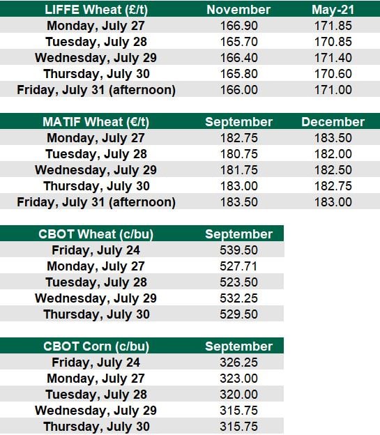 On the continent, feed barley (delivered Rouen) was trading at €163/t on Friday morning, July 31, while Free-On-Board (FOB) Creil malting barley was trading at €174/t.