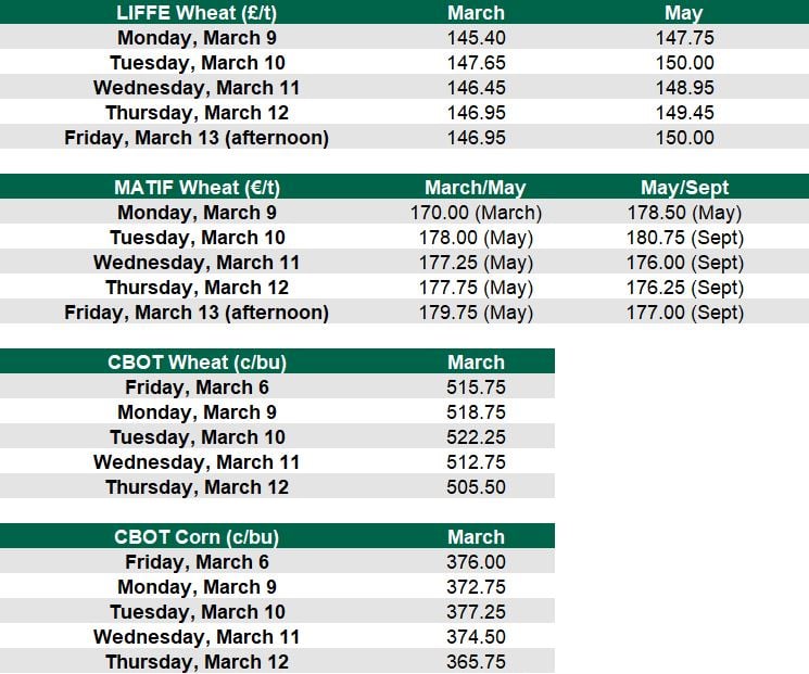 Grain prices fell this week across global grain markets, but showed positive signs on Friday afternoon, March 13. While wheat price was affected, oilseed rape saw a dramatic drop.