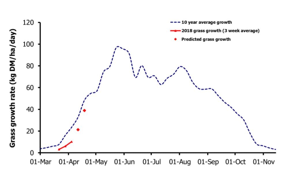 The data showed the rise in temperature had been coupled with high levels of rain, boosting growth rates across all farm types well above the 4.9kg DM/ha/day expected.