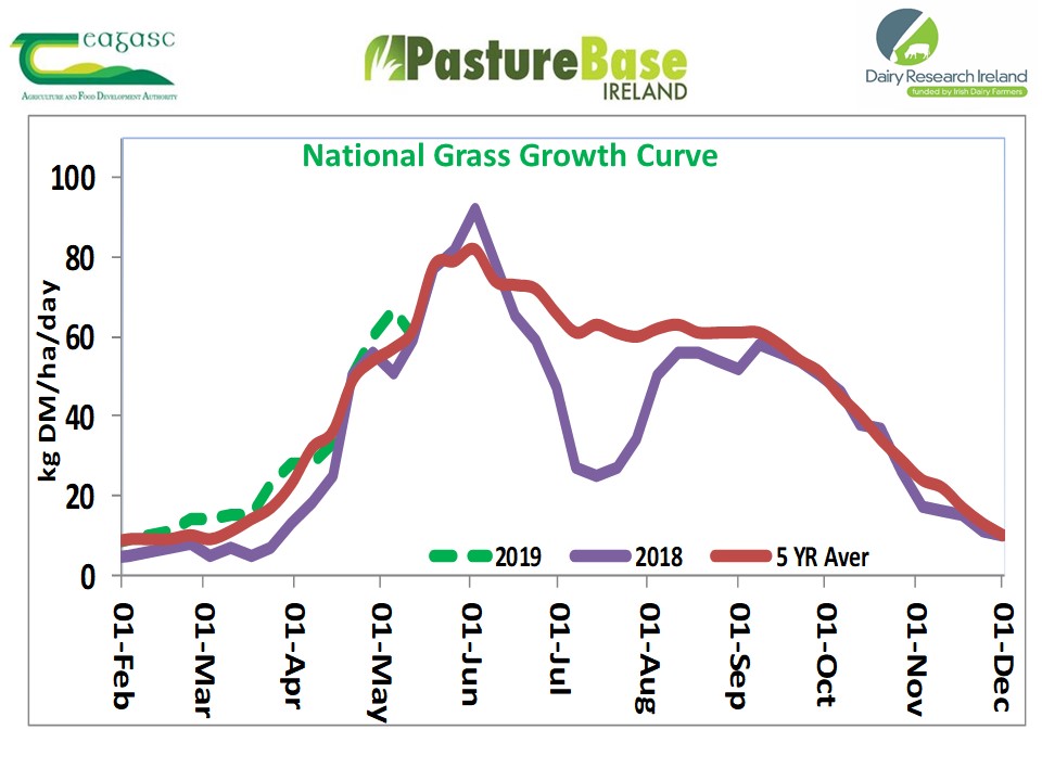Previously, grass growth had been running ahead of growth rates for 2018 and the five-year average.
