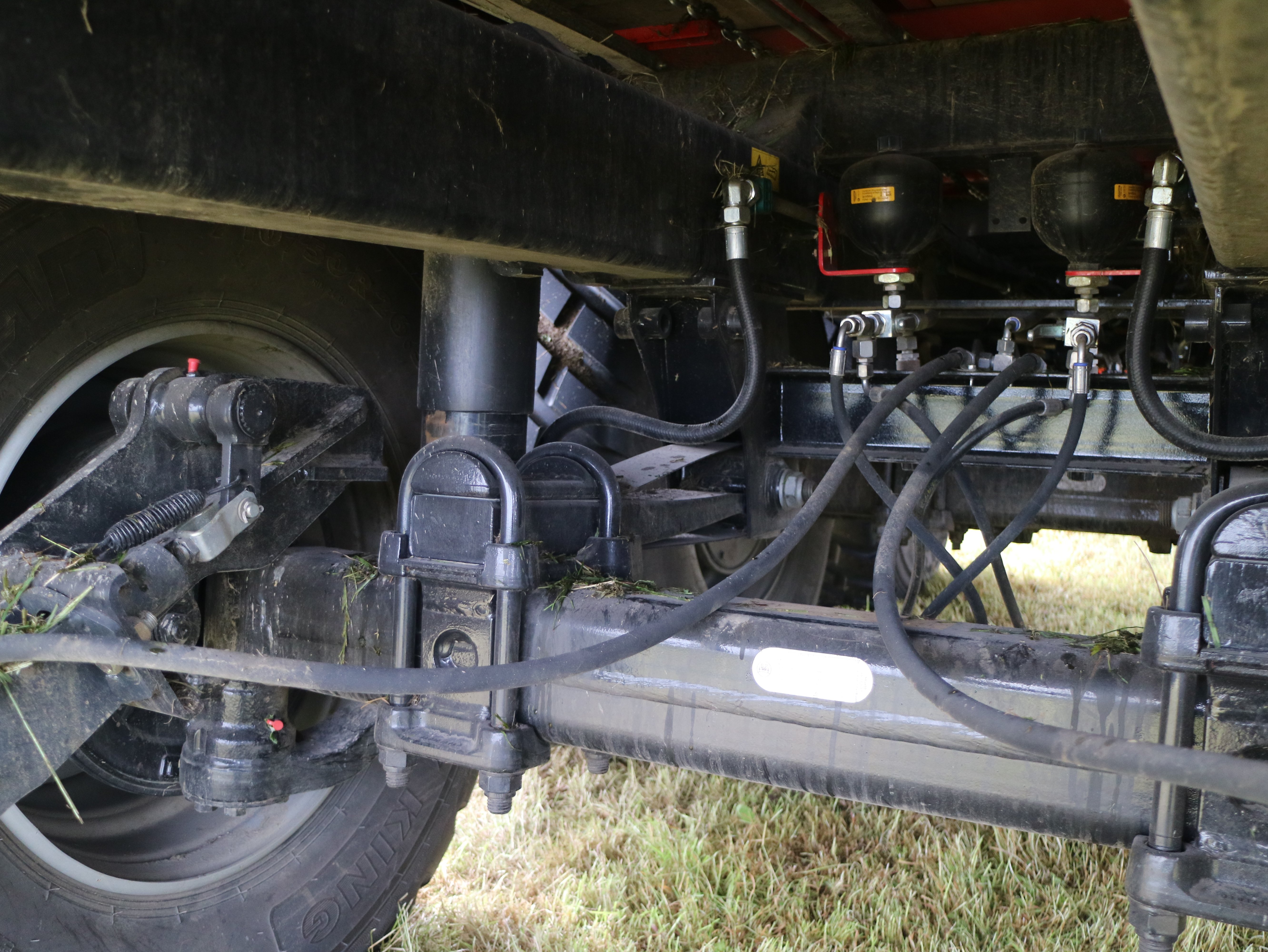 One of the most noticeable features of the 7210 is, without doubt, its triple-axle configuration; its steering function is controlled via two link-arms connected to a Dromone spoon hitch.