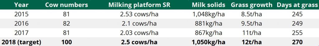 This move will bring the milk platform’s stocking rate to 2.5 cows per hectare. Targets have also been set to improve the volume of milk solids sold and the quantity of grass grown on-farm.