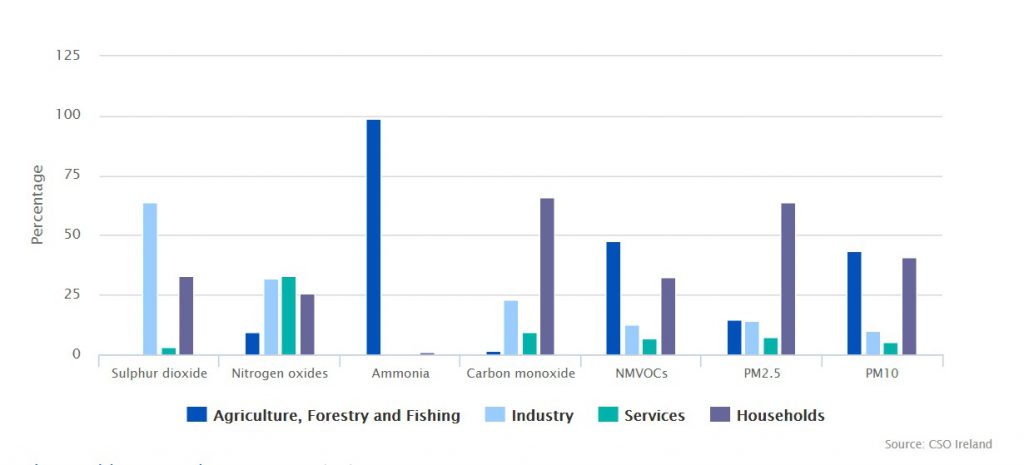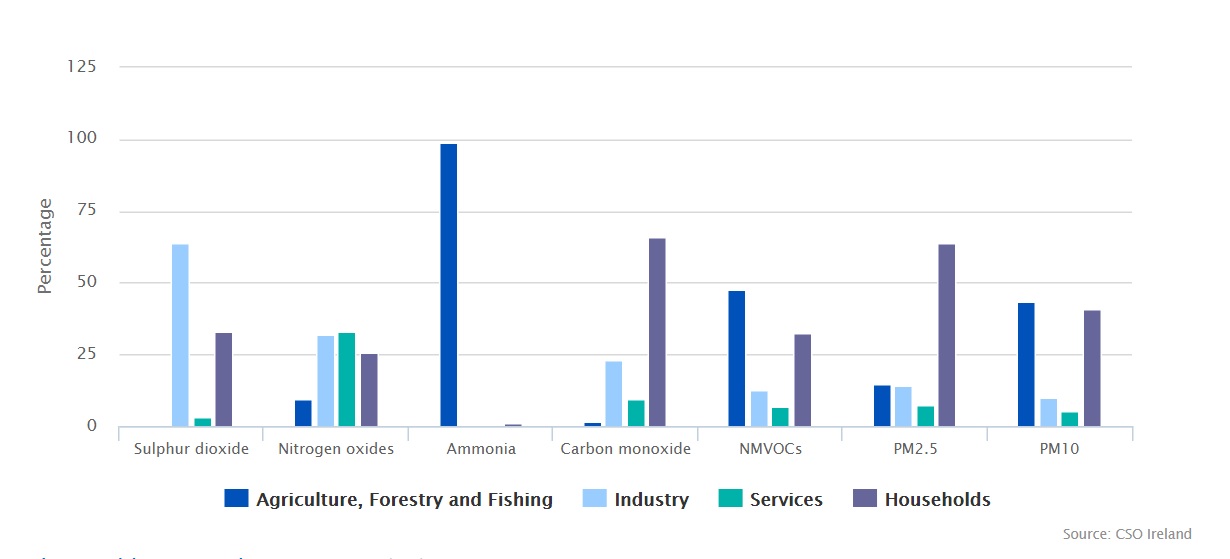 Greenhouse gases from the agriculture, forestry and fishing sector have overtaken the emissions from industry, according to the latest statistics from the Central Statistics Office (CSO).