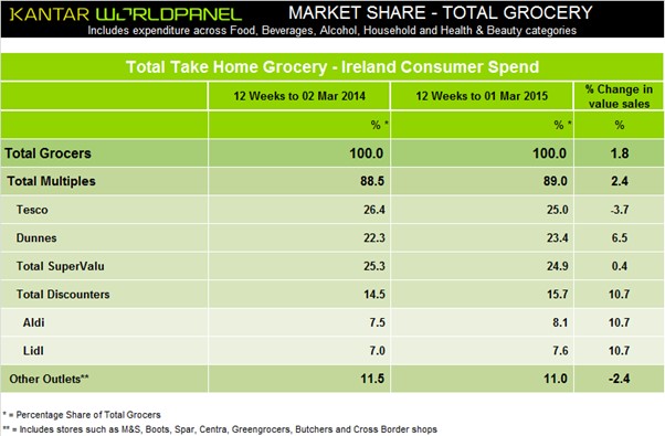 The latest supermarket share figures from Kantar Worldpanel in Ireland, published for the 12 weeks ending March 1, show contrasting fortunes among the major supermarkets in an increasingly competitive marketplace.