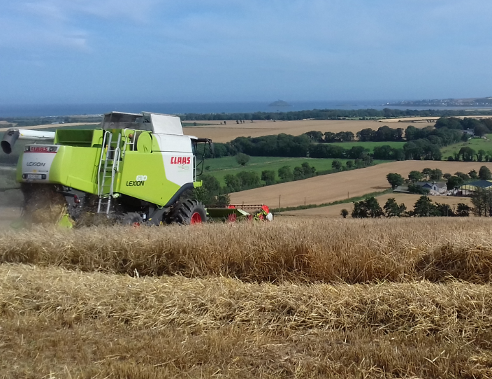 Finally, for this week, Barry Fitzgerald sent in this shot (below) of Brendan Casey of Jer Whyte Agri Services harvesting winter barley for Fitzgerald Farming. Ballycotton Island can be seen in the distance.