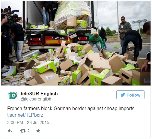 “Their strategy has been to go into supermarkets and take all the non-French fresh produce off the shelves, take it to the check out and then say they have no money, so the fresh meat is being inadvertently destroyed.”