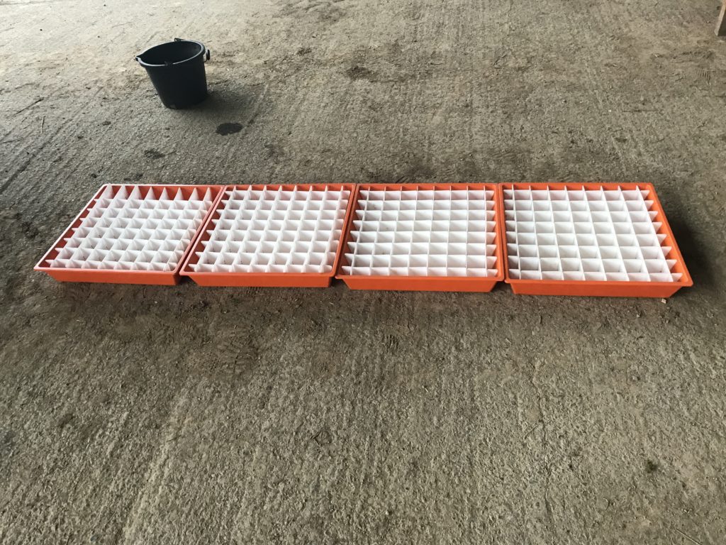 A set of trays (examples of which are shown below) is inexpensive and can give a good indication of your spread pattern. Inserts should be fitted inside the trays, so that granules of fertiliser don’t bounce back out.