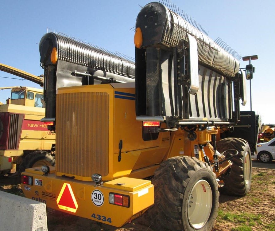 In any case, the Oxbo 4334 employs belt-type conveyors (or groupers) – unlike a conventional rotary rake. In fact, Oxbo’s approach is similar to that employed by Italian company ROC; it produces a range of tractor-drawn and tractor-mounted swath mergers that also use a belt-type conveying system.