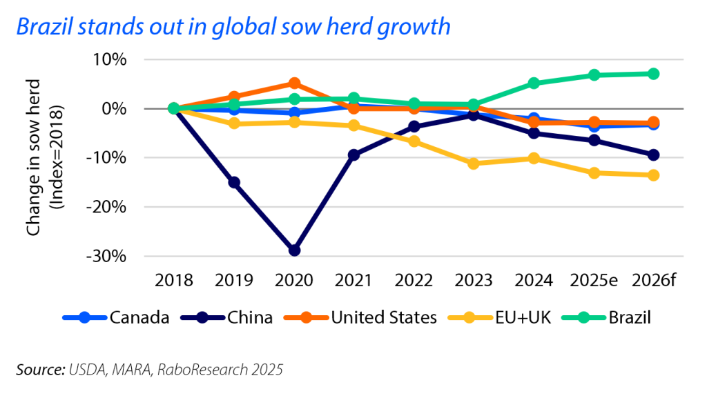 However, Brazil's continued sow herd growth, fuelled by favourable margins and robust export growth, partially offsets this decline.