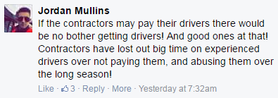 “Contractors have lost out big time on experienced drivers over not paying them, and abusing them over the long season!” he said.
