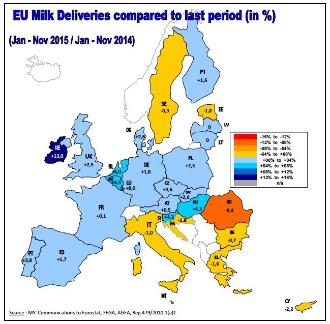 In total, in the EU and the latter countries, the Commission forecasts 3.5 million tonnes additional milk is expected to be produced in 2016.