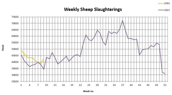 The week-on-week ewe and ram kill has also increased between the week ending February 28 and March 3.