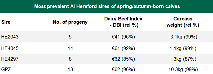 The second-most popular sire breed is Hereford, accounting for 130 of the spring-2020 and autumn-2019 calves purchased by farmers participating in the programme (75 heifers and 55 bulls).