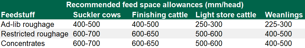 Lighter animals (under 275kg), according to Teagasc, that are housed in straw-bedded sheds, require 2.4-3.0m²/animal; heavier cattle (over 275kg) need 4.0m²/head.