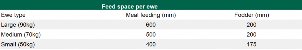 Smaller ewes weighing 50kg require a feed space of 400mm when being fed concentrates.