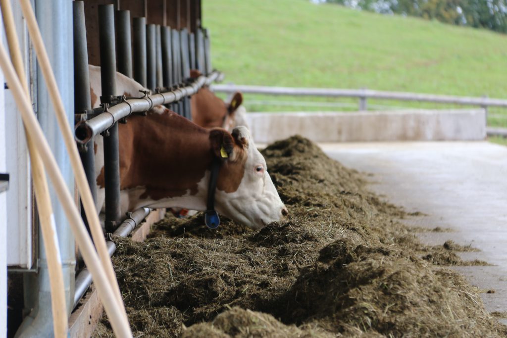 The Dairy Simmental typical of the region have an annual yield of 8,200L. The cows have a protein content of 3.4% and a high butterfat (around 4.2%) which helps with the production process.
