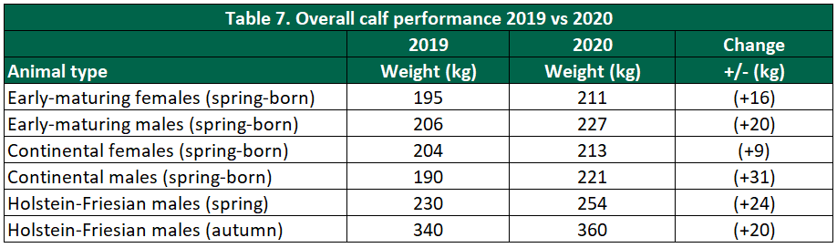 Early-maturing males born in spring 2020 and Holstein Friesian bulls born in the autumn of 2019 both had an additional weight gain of 20kg, compared to the group of weanlings weighed during 2019.