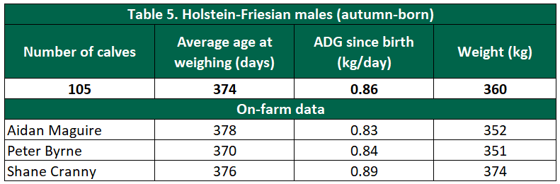 Holstein Friesian bred males dominated the programme as there was a total of 105 with 739 autumn-born and spring-born calves, respectively.