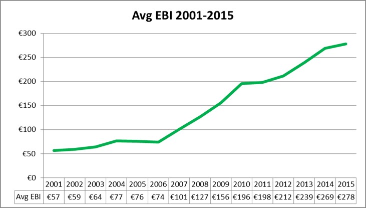 Last year Progressive and Munster AI’s top 10 AI sires had an average EBI of €301. In 2015, the equivalent figure is €331.
