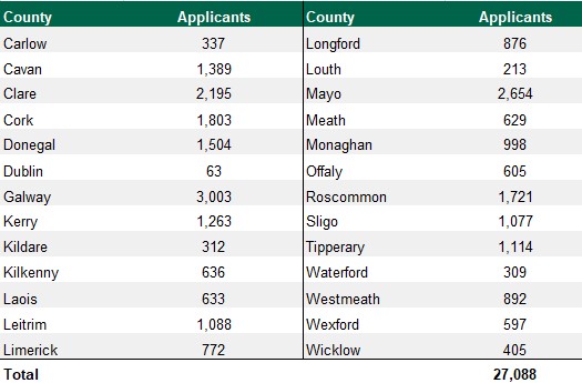 In his response, the minister provided a county-by-county breakdown of successful applicants under the scheme.