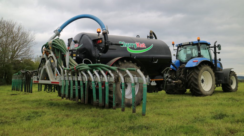 In Co. Kerry, an agri-contractor quoted a price of €50/hour (including VAT) for slurry spreading, using a 2,000-gallon tanker with a splash-plate.