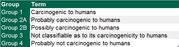 The IARC classifies carcinogens into five categories as follows: