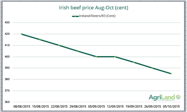 The beef price has tumbled back from highs of €4.25 in early August on the back of stronger than expected supplies and weak demand in some of our key markets, particularly in France.