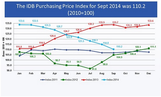 The Irish Dairy Board’s (IDB) Production Price Index (PPI) for September was down over 4% on the August return and is now at its lowest level since November 2012.