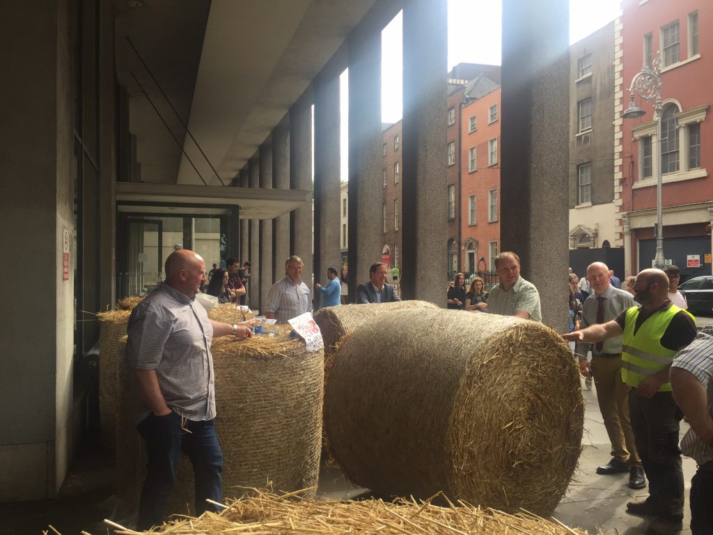 Originally a total of 14 (4X4) round bales of straw had been brought up to Dublin, but only eight were unloaded outside the department building.