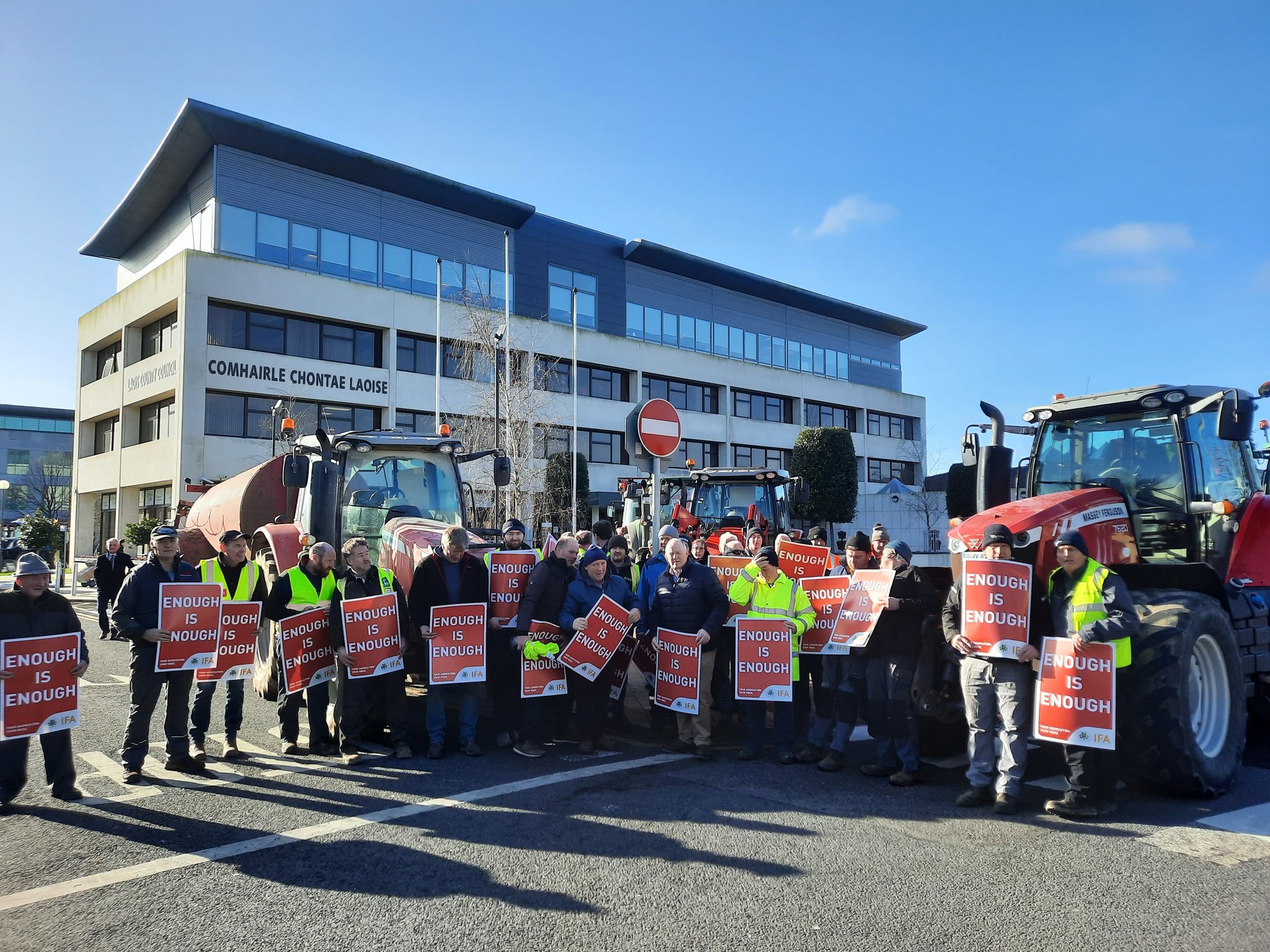 Around 50 tractors, led by Laois IFA chair John Fitzpatrick, arrived outside the local authority offices in Portlaoise to coincide with the monthly meeting of county councillors.