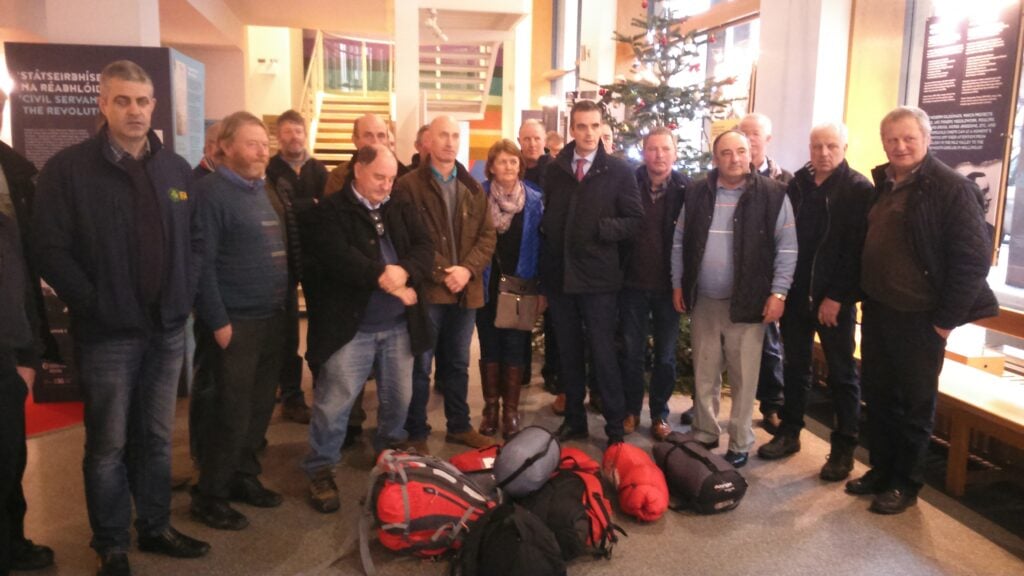 Meeting at the Department of Agriculture’s headquarters on Kildare Street, a number of the IFA’s Livestock Committee, including livestock chair Angus Woods, gathered with protest placards and sleeping bags in tow.