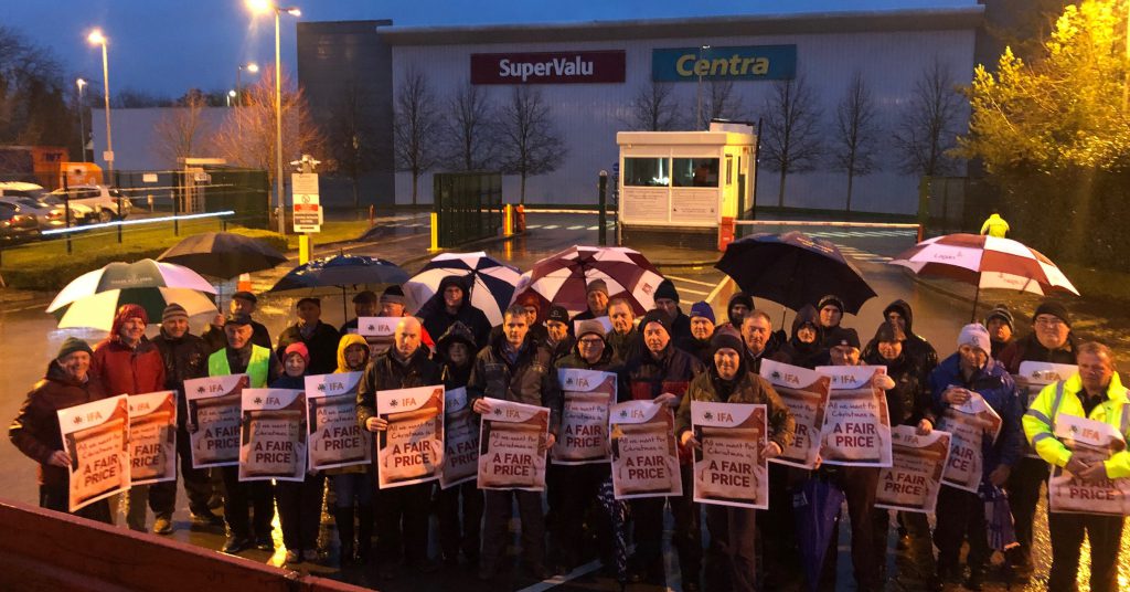 The Irish Farmers’ Association (IFA) has continued its beef protest this morning, Tuesday, December 10, by blockading the Musgraves central distribution centre (CDC) in Kilcock, Co. Kildare.