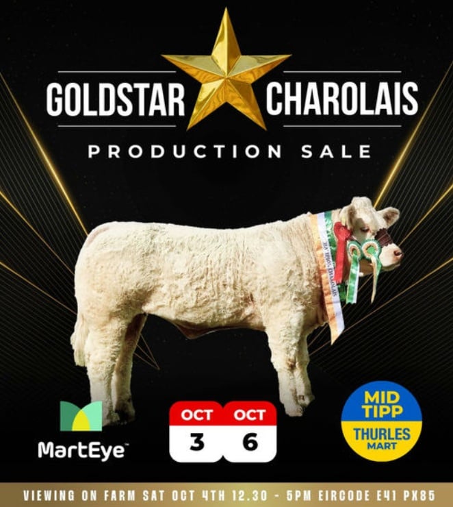 The well-known and aptly named 'Goldstar Charolais Herd' owned by Martin Ryan from Thurles, Co. Tipperary, is set to host an online production sale this coming weekend.