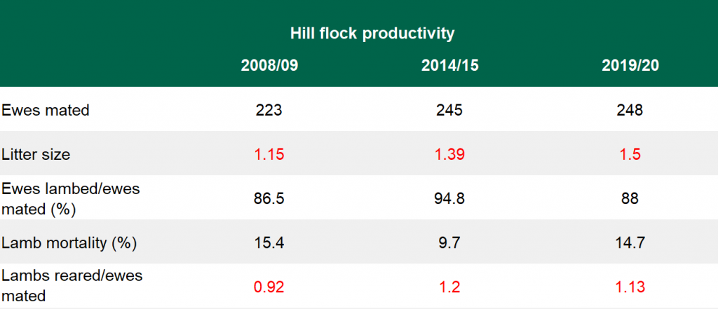 In the table (below) the progress David has made since joining the programme, in terms of flock productivity over the last 12 years is illustrated.