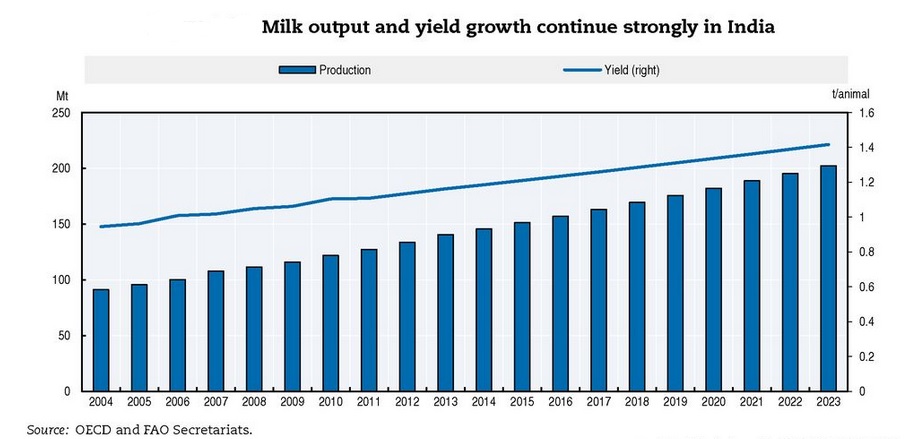 India is expected to outpace the European Union and become the largest milk producer in the world, according to the latest Agricultural Outlook produced by the OECD and FAO.