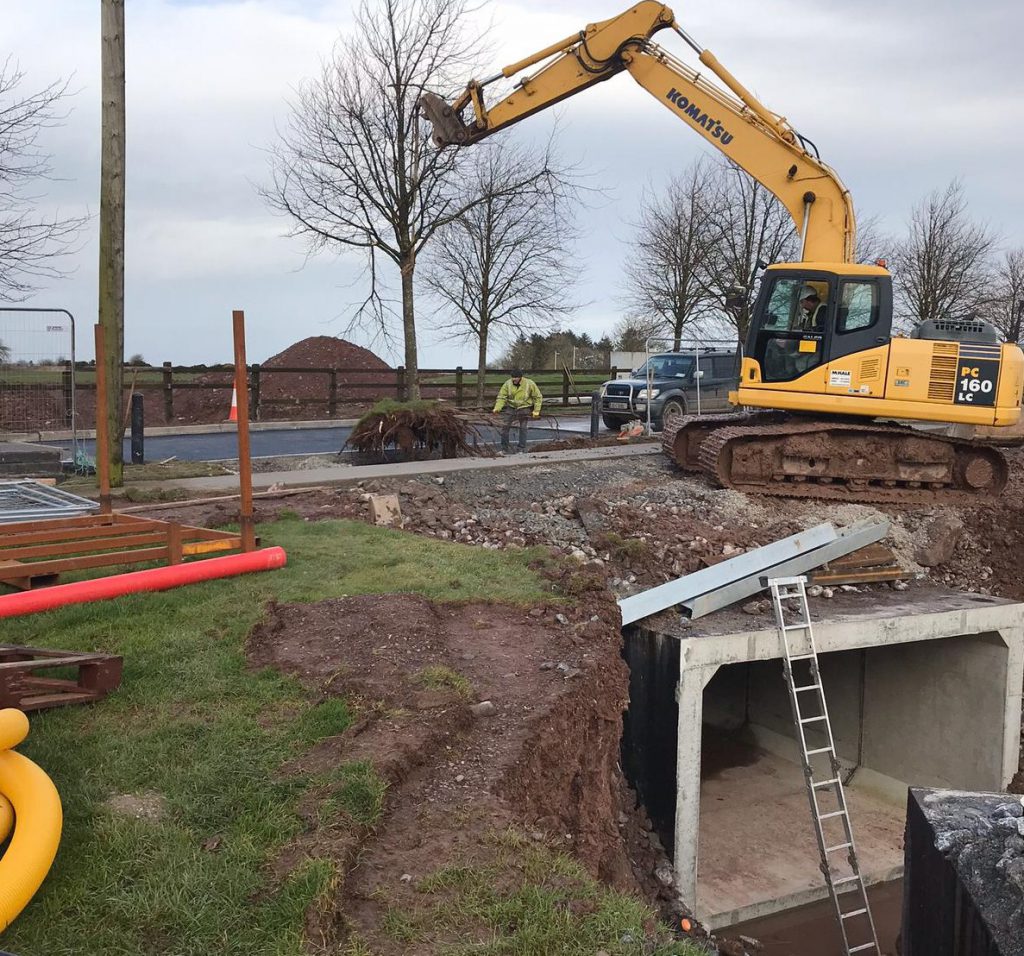 The excavation work and the installing of the underpass was carried out by Croom Concrete in Co. Limerick. The design of the underpass was carried out by both Croom Concrete and Grasstec.