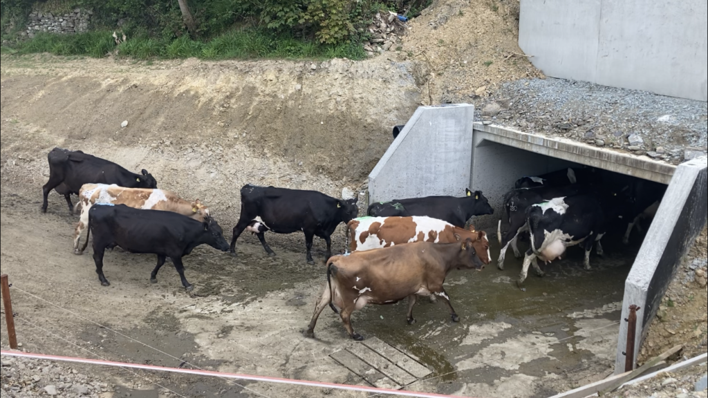 Scott said that despite their still being a fair fall down into the underpass that cows have taken to it well and aren't one bit fussed about it.