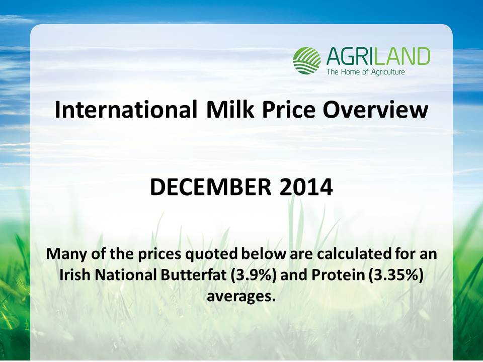 FrieslandCampina – Dutch based FrieslandCampina started the year with a Farmgate price of 41.56c/L. The December price settled on 29.72c/L, a 28% drop over the year. FrieslandCampina also introduced a new pricing mechanism in January 2014. They moved away from the A + B – C pricing to a new A + B + Lactose pricing mechanism.