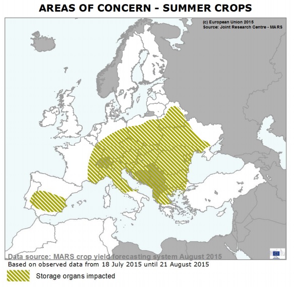 The Commission says large areas of Europe have been negatively impacted by high temperatures and dry conditions, hitting summer crops during their most critical grain-filling stage.