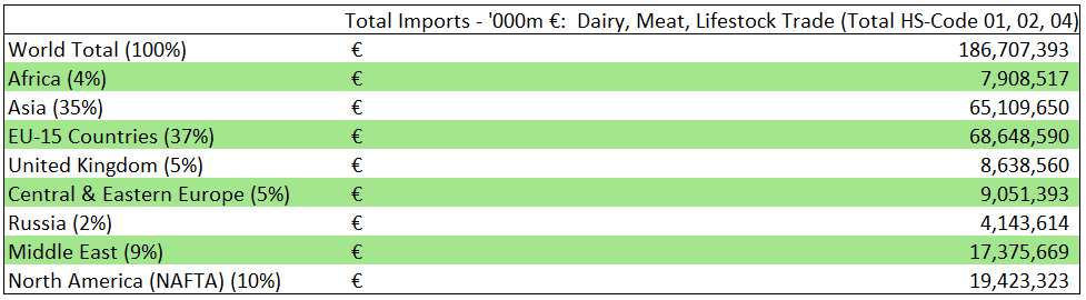 Asia, with €60 plus billion in livestock and dairy related trade, will soon surpass the EU as the leading export destination.