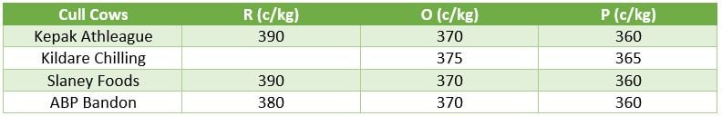 The cull cow trade also remains strong with plants quoting 360-365c/kg for P grade Holstein type cows. The better quality O grade cows are making 370-375c/kg while procurement managers are actively paying 380-390c/kg for the R grade lots.