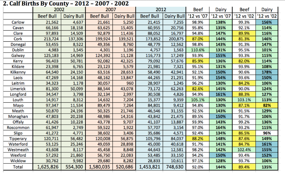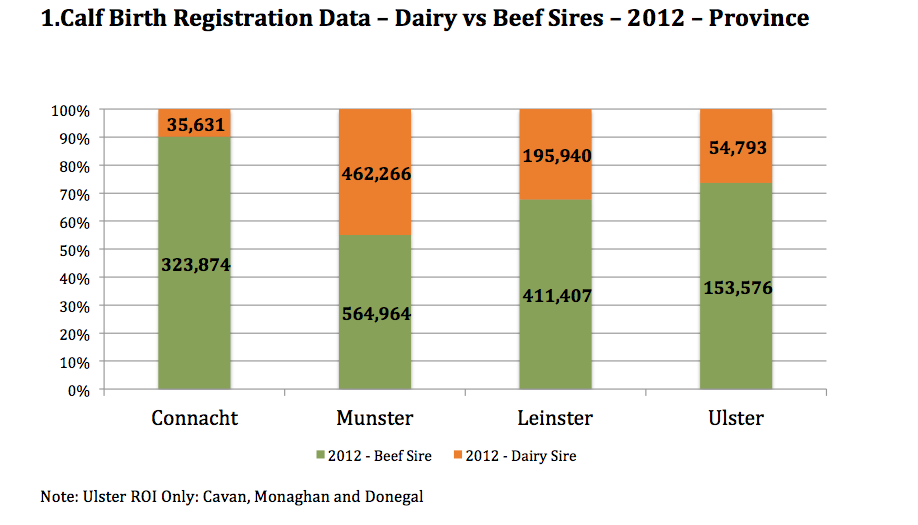 In fact Cork is now the only county in the Republic of Ireland where births to a dairy bull exceed those of a beef breed.