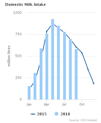 Other figures from the CSO show that total milk sold for human consumption in September increased by 4.4% to 44.0m litres on September 2015.
