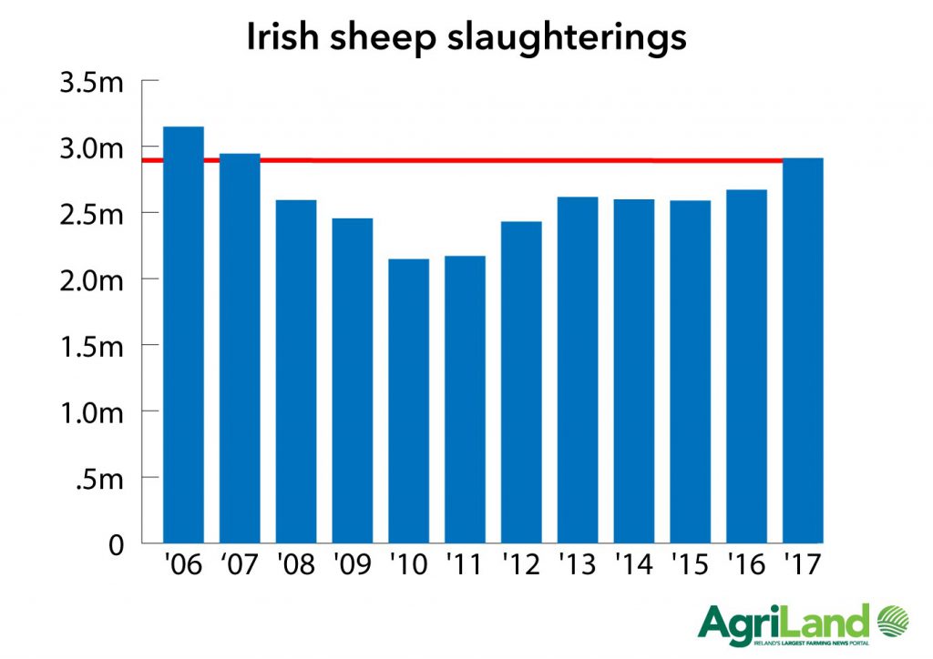 Official figures show that over 2.91 million sheep were slaughtered in Ireland up to the week ending December 24, 2017.